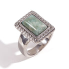The centerpiece of this exquisite ring is a natural green stone known for its striking color and organic appeal. Imagine slipping this ring on your finger and feeling an immediate connection to the earth—its vibrant green hue reminiscent of lush forests and natural beauty. This ring will make a statement whether wearing it casually or to a special event.